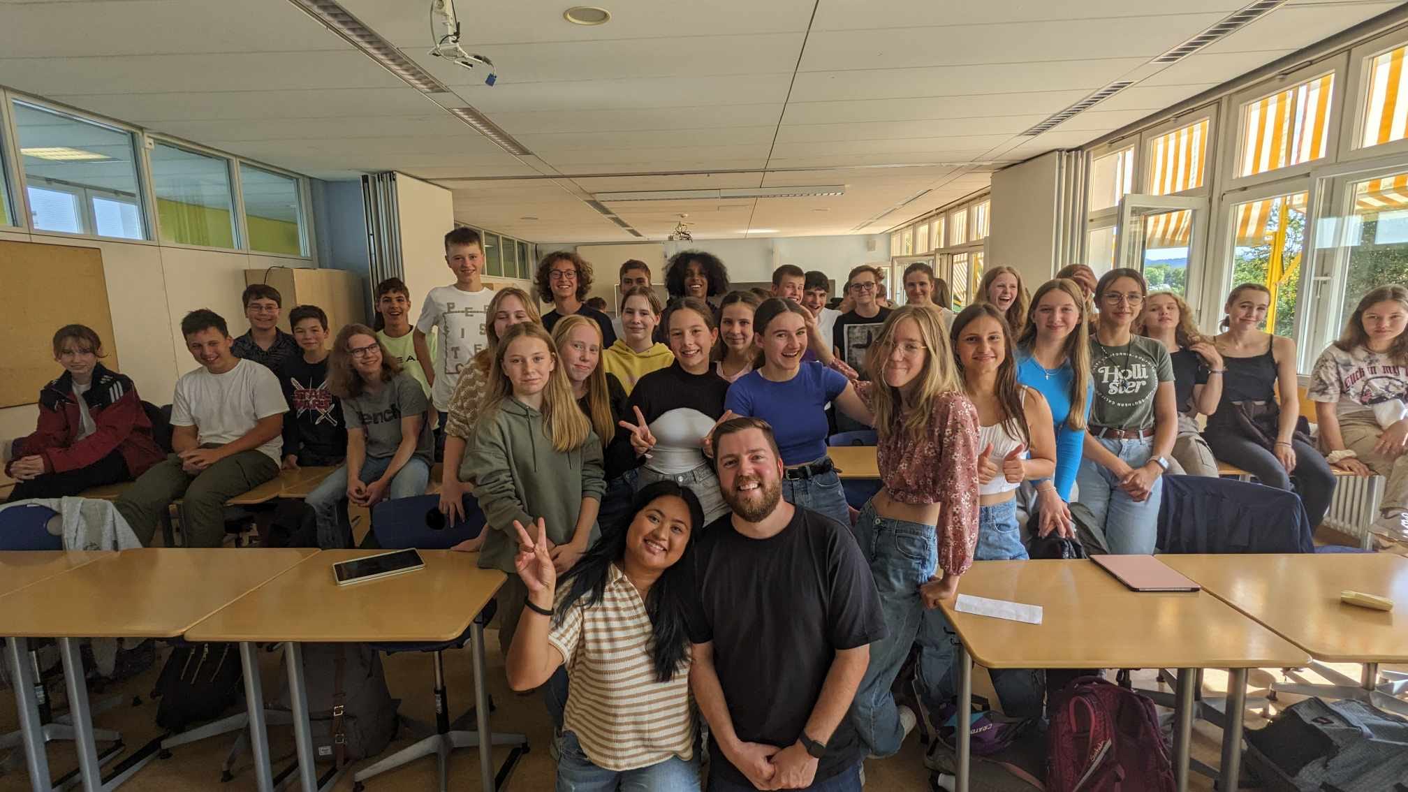 Am Donnerstag, dem 21. September 2023, durfte das Gymnasium Neckartenzlingen einen ganz besonderen Besuch begrüßen. Zwei Gäste aus Down Under, Krystal Traemer und Daniel Adams aus Sydney, Australien, waren zu Gast in der Schule und brachten eine Extraportion Sonnenschein und interessante Einblicke in die Kultur und das Leben auf der anderen Seite der Welt mit.