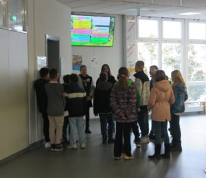 Während der Schultour haben wir den Viertklässlern unsere wichtigsten Räume gezeigt. Sie kannten ja schon unser Klassenzimmer. Neu für sie waren die Schließfächer im Gang, wo wir unsere Schulbücher aufbewahren. Danach führten wir sie an den Toiletten vorbei zur kleinen Aula, wo der Vertretungsplan hängt und wir Tischkicker spielen können. Anschließend zeigten wir ihnen das Lehrerzimmer, die Bibliothek, das Bücherteam, die Räume der Ganztagsbetreuung und das Sekretariat mit unseren zwei netten Sekretärinnen, die immer ein offenes Ohr für uns haben. Danach führten wir sie zur Spielestation, zum Pausenhof und dem Stadion und unserem Schulgarten mit den Hühnern. Es gab so vieles zu entdecken und zu zeigen, die Zeit verging wie im Flug.