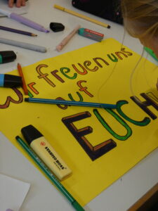 Heute hatten wir Besuch von den Viertklässlern! Ein Teil von uns plante eine kleine Tour durch unsere Schule in den Stunden drei und vier. Währenddessen gestaltete der Rest von uns gemeinsam mit den Viertklässlern den Unterricht in unserem Klassenzimmer. So konnten sie einen kleinen Einblick in unseren Schulalltag mit Mathe und Deutsch bekommen und in das Fach Geografie, bei dem sie dann sogar ein Zertifikat erhalten haben über ihre super Kenntnisse bei der Arbeit mit dem Atlas.