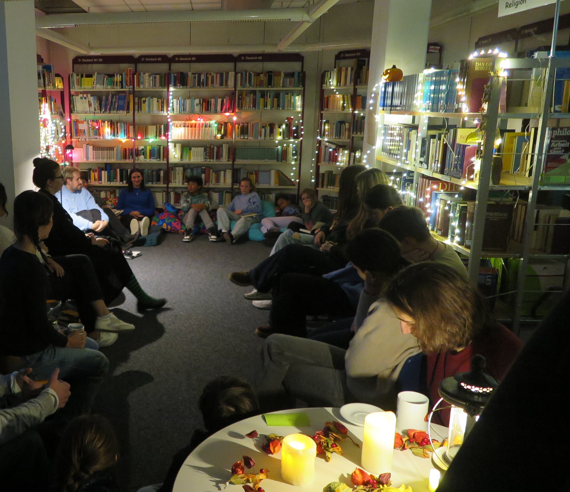 Am 13. November fand der Vorlesetreff „Fingerfood und Kopfkino – November(grau)en“ statt. Dabei ging es ganz schön gruselig, gespenstisch und gemütlich zu: Mit 25 begeisterten Gästen, von der 5. bis zur 12. Klasse, tauchten wir in fantastische Welten ein. Ausgewählte Bücher aus verschiedenen Genres wurden vorgelesen – ein tolles Fest für alle Buchliebhaber*innen.