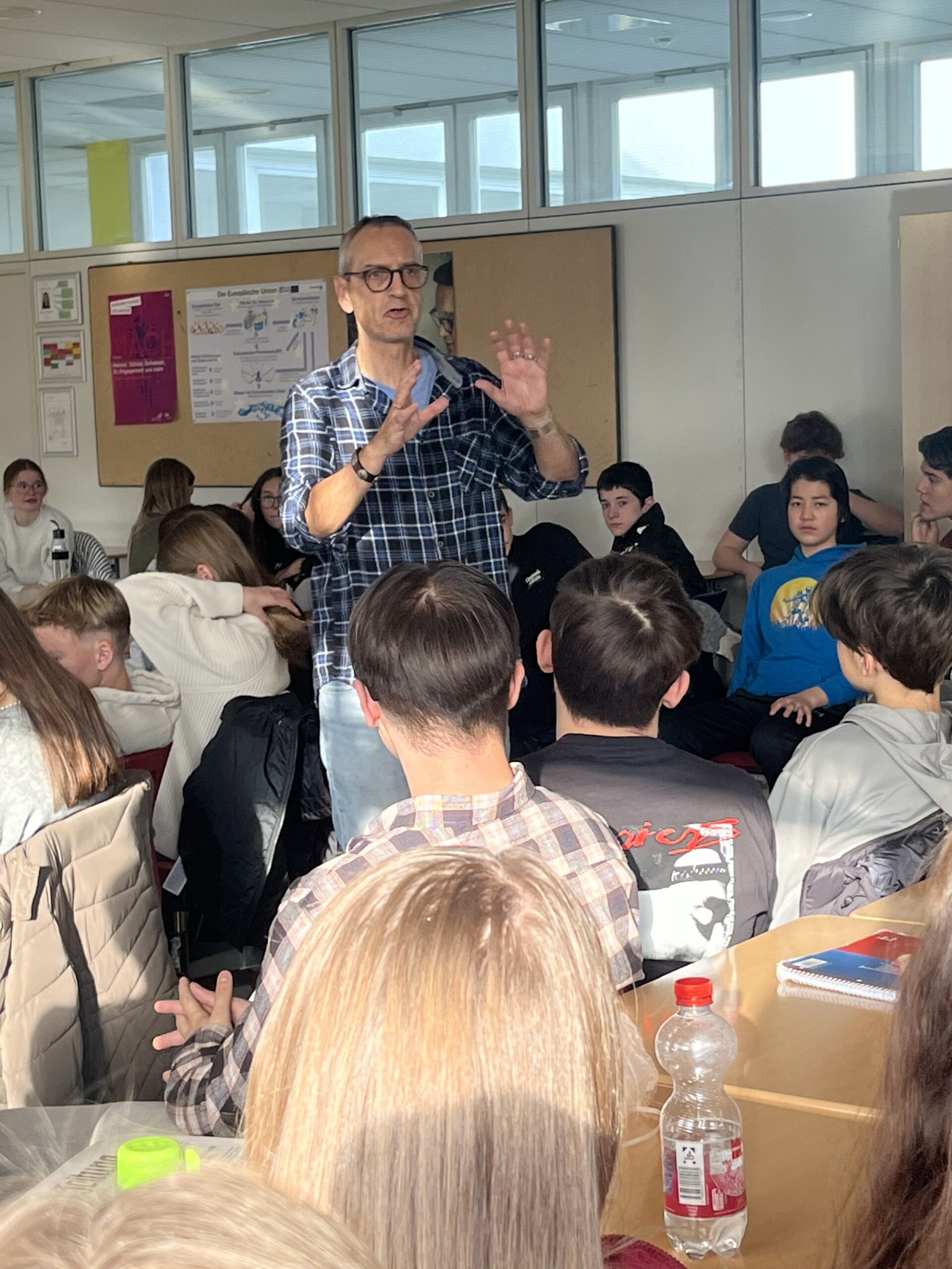 Im Rahmen des jährlich wiederkehrenden Projekts „Zeitung in der Schule“ hatten die 9. Klassen die Gelegenheit, einen spannenden Einblick in die Welt des Journalismus zu erhalten. Dieses Projekt wurde in Zusammenarbeit mit der Nürtinger Zeitung durchgeführt und bot den Schülerinnen und Schülern eine einzigartige Lernerfahrung. Während des Projektzeitraums, der von den Herbstferien bis Anfang Dezember dauerte, erhielten die Schülerinnen und Schüler täglich ein Exemplar der Nürtinger Zeitung und Zugang zu einer interaktiven Lernplattform. Dies ermöglichte es den Klassen, sich intensiv mit aktuellen Themen auseinanderzusetzen, Zeitungsartikel zu analysieren und zu diskutieren sowie den Aufbau und die Struktur einer Tageszeitung besser zu verstehen. Ein Highlight des Projekts war zweifellos der Besuch von Andreas Warausch, einem erfahrenen Redakteur der Nürtinger Zeitung. Herr Warausch begann seinen Besuch mit einem informativen Vortrag über seine tägliche Arbeit als Journalist. Er erläuterte den Schülerinnen und Schülern lebensnah die verschiedenen Schritte, die notwendig sind, um eine Zeitungsausgabe zu erstellen, von der Recherche über das Schreiben bis hin zum Druck. Nach seinem Vortrag nahm sich Herr Warausch Zeit, um die zahlreichen Fragen der Schülerinnen und Schüler zu beantworten. Die Fragen reichten von den Herausforderungen des Berufsalltags bis hin zu den ethischen Aspekten des Journalismus. Diese Fragerunde bot den Schülerinnen und Schülern die Möglichkeit, tiefergehende Einblicke in die journalistische Praxis zu gewinnen und ihre Neugier zu stillen. Ein Schreibworkshop, den Andreas Warausch anschließend mit der Klasse 9c durchführte, krönte seinen Besuch im Unterricht. In diesem Workshop lernten die Schülerinnen und Schüler die Grundlagen des journalistischen Schreibens kennen. Sie erhielten praktische Tipps zur Recherche, zum Aufbau eines Artikels und Formulierungshilfen. Die Schülerinnen und Schüler hatten während des gesamten Projekts die Gelegenheit, selbst Artikel zu verfassen und zu veröffentlichen, was von einigen Jugendlichen erfolgreich genutzt wurde.