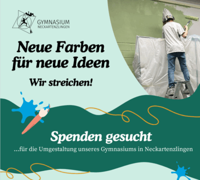Vom 23.-25.07.2025 werden die Schüler*innen des Gymnasiums Neckartenzlingen den Pinsel schwingen: Fast 30 Klassenräume sowie Flure und Aufenthaltsbereiche werden neu gestrichen.