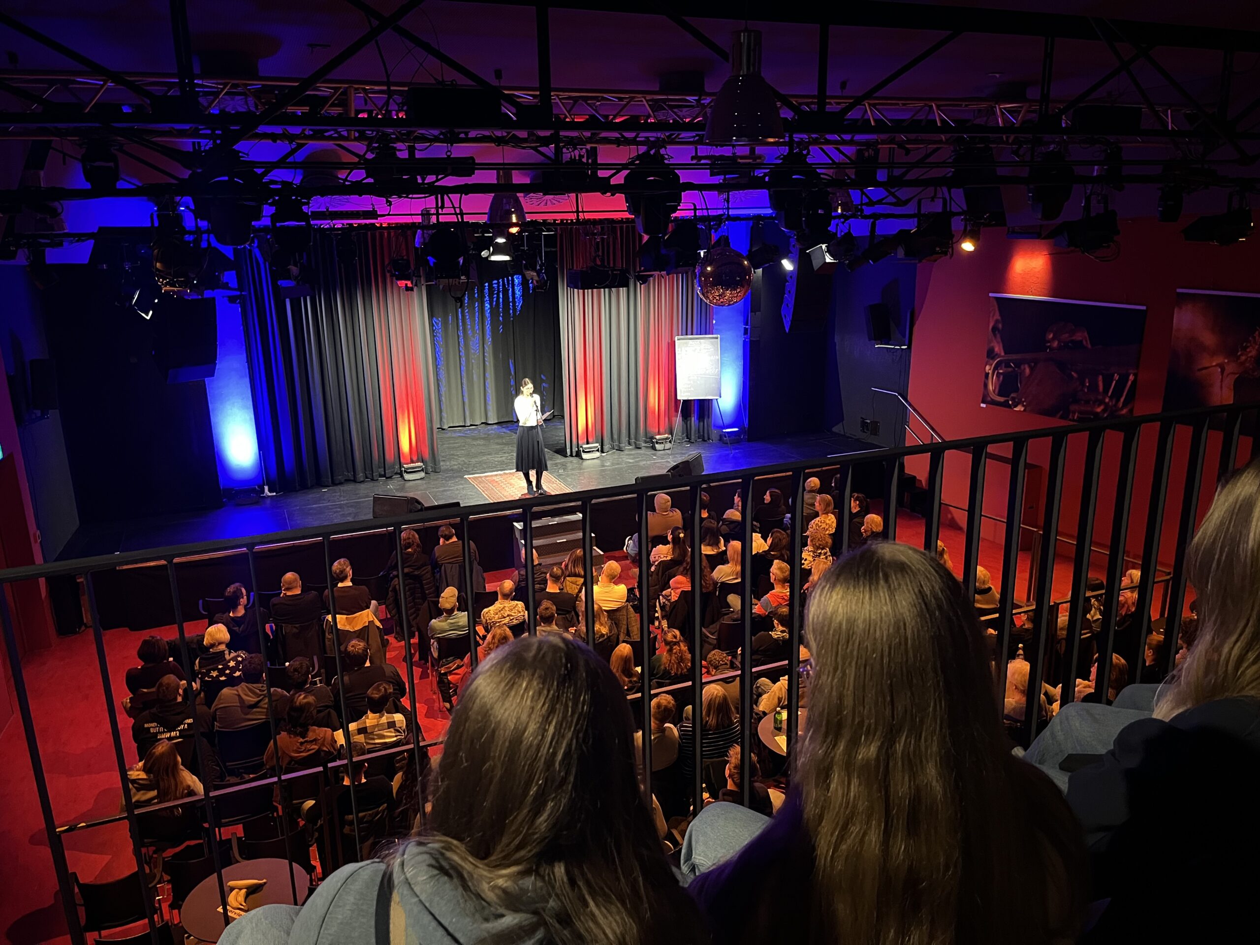 Ein vorweihnachtliches Geschenk mache sich unsere Schülerin Lana Schmidt aus der Kursstufe am 10.12.2024, indem sie erfolgreich am renommierten Poetry Slam Wettbewerb Poesie und Pommes im Reutlinger FranzK teilnahm. Der Wettbewerb, der regelmäßig junge Talente aus der Region zusammenbringt, bietet eine Plattform für kreative Wortkunst und leidenschaftliche Darbietungen. Lana beeindruckte das Publikum mit ihrem ausdrucksstarken und bewegenden Beitrag, konnte sich so in der ersten Runde durchsetzen und erreichte mit ihrer Performance letztlich einen hervorragenden dritten Platz – eine bemerkenswerte Leistung. Begleitet und unterstützt wurde sie von einer begeisterten Gruppe von Schülerinnen und Schülern aus den Klassen 9 bis zur Kursstufe und Lehrkräften. Die Unterstützung ihrer Mitschülerinnen und Mitschüler trug zu einer großartigen Atmosphäre bei und zeigte den starken Gemeinschaftssinn unserer Schule. Wir gratulieren unserer Schülerin herzlich zu ihrem Erfolg und sind stolz auf ihre Leistung. Wir freuen uns darauf, noch weitere Werke zu erleben und wünschen ihr weiterhin viel Erfolg auf ihrem künstlerischen Weg.