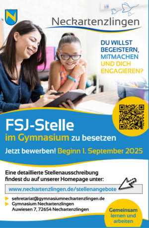 Auch im neuen Schuljahr bieten wir eine FSJ-Stelle an. Weitere Informationen gibt es in der Ausschreibung