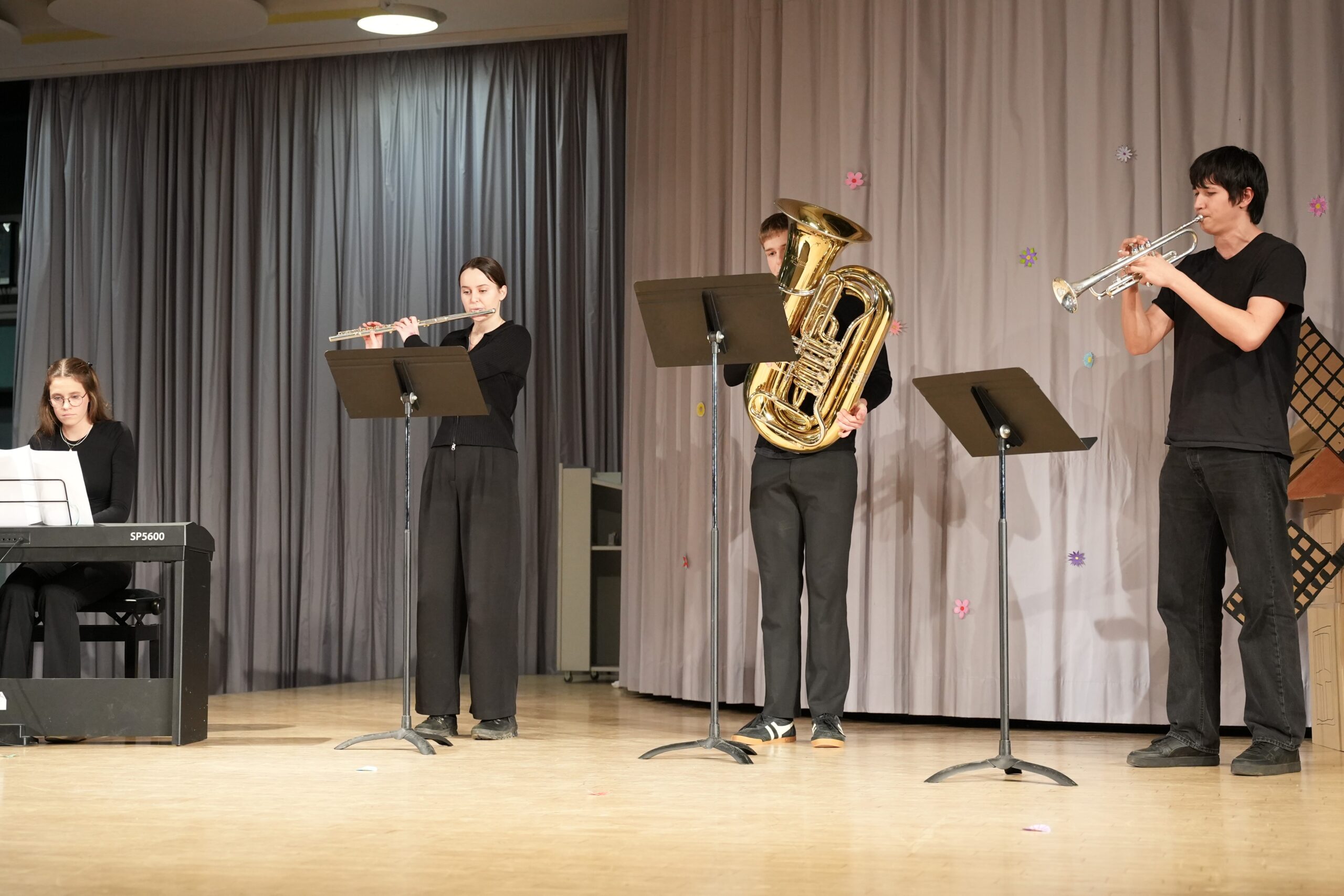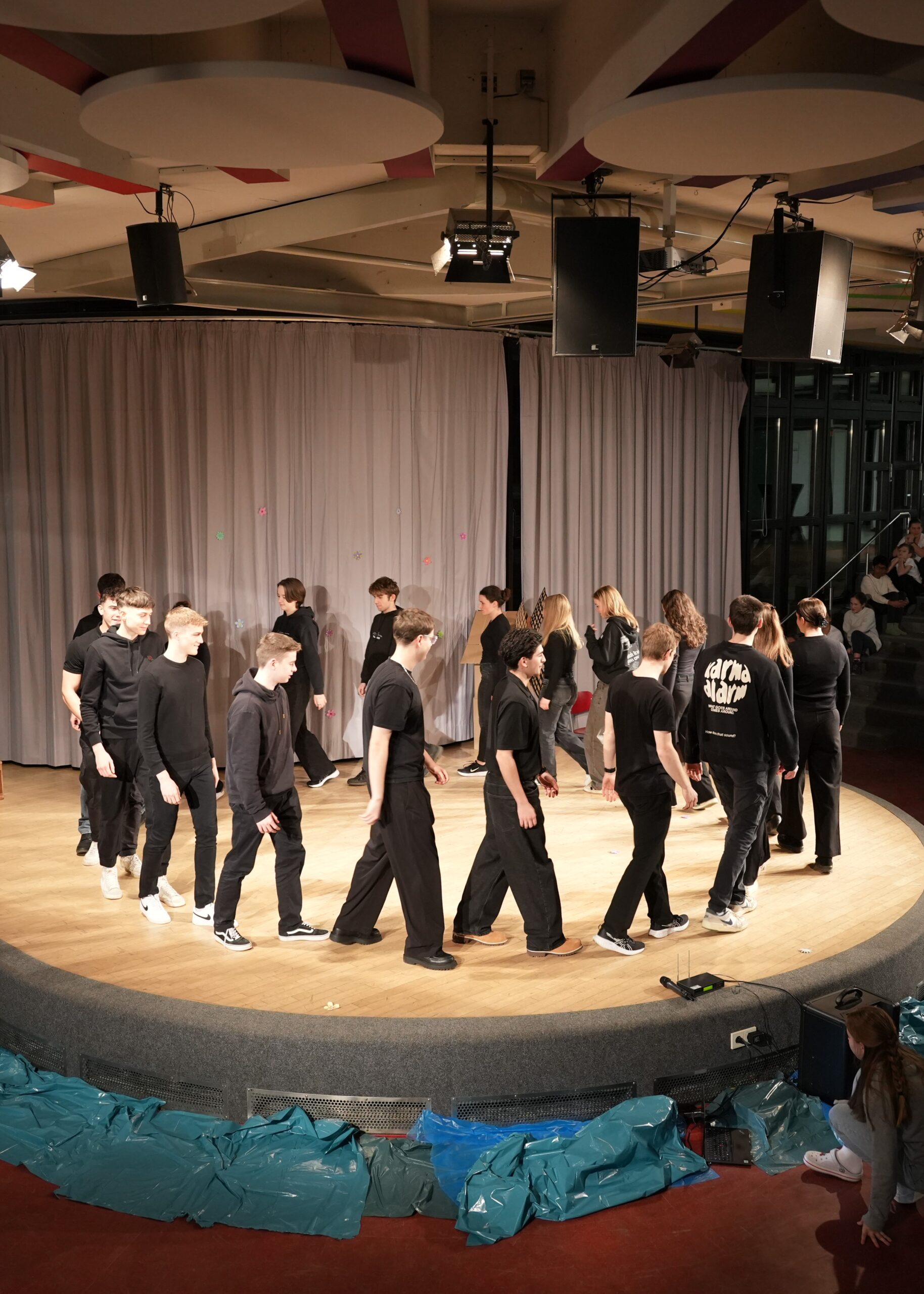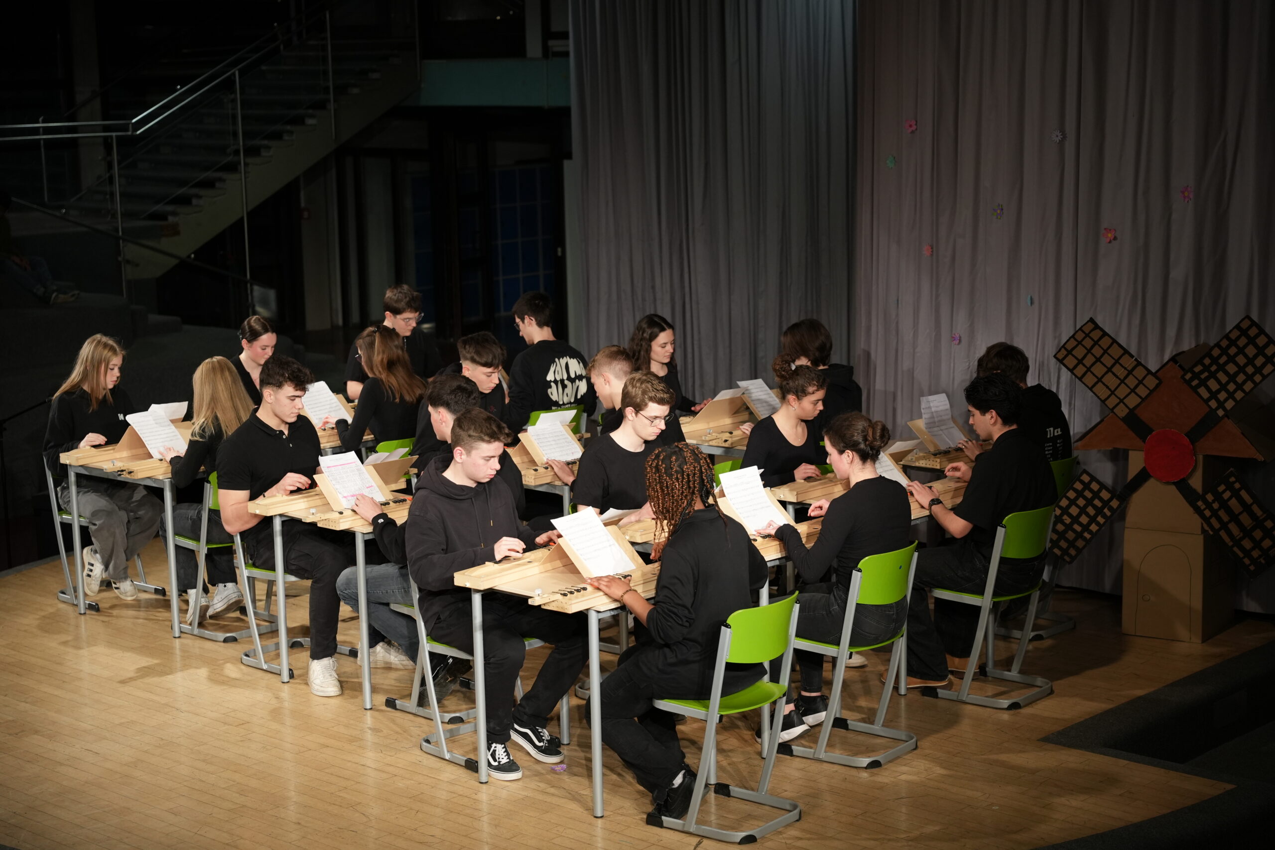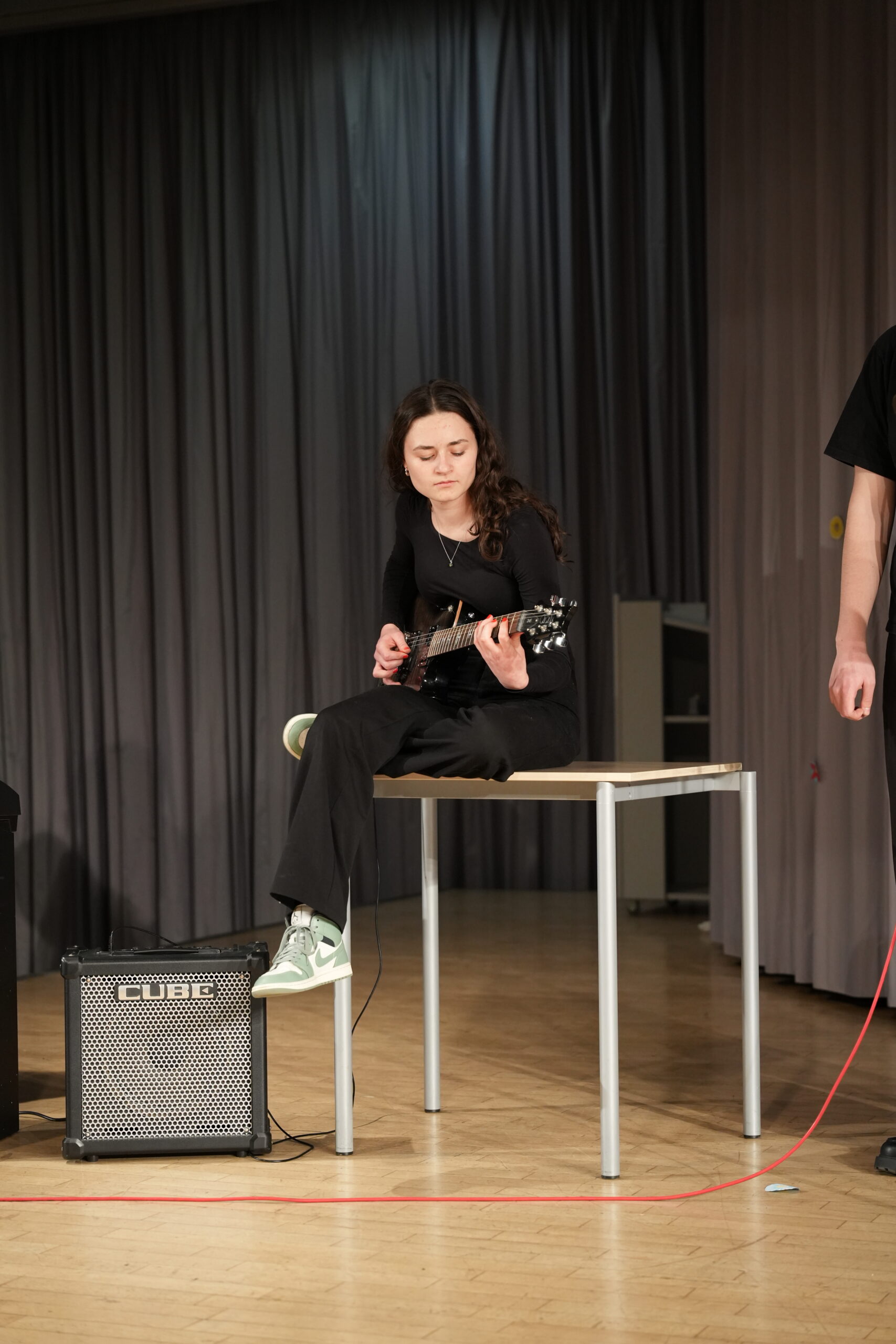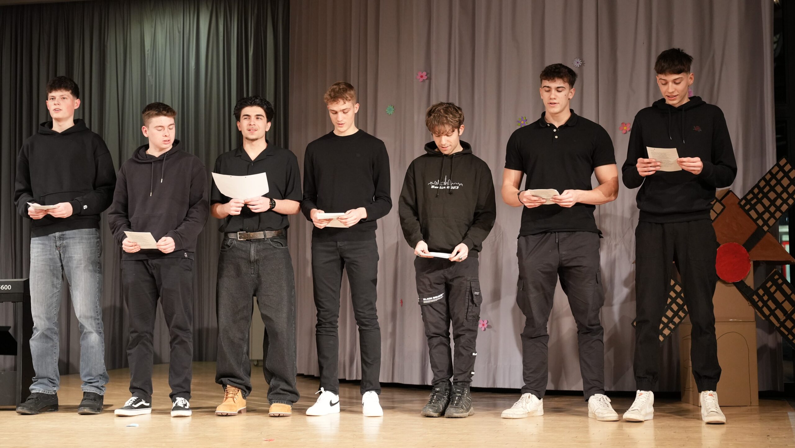 Am Donnerstag, 30. Janaur 2025, hatte der Musik-Leistungskurs der Jahrgangsstufe 12 zur Schubertiade eingeladen. Franz Schubert, Komponist der Romantik, hatte mit seinem Freundeskreis regelmäßig gesellige Abende veranstaltet, an denen er seine Kompositionen präsentierte und sein, hauptsächlich aus Intellektuellen bestehender, Freundeskreis ihm dazu Rückmeldung gab und auch eigene Gedichte und literarische Werke präsentierte. Diese Schubertiaden dienten als Vorbild für das Konzert des Leistungskurses, in dessen Mittelpunkt Schuberts Liederzyklus „Die schöne Müllerin“ stand. Verstärkung bekamen die vier Schüler*innen durch den Basiskurs der JG II, die Unterstufen Theater-AG und Musiker*innen aus der JG I. Für das leibliche Wohl sorgte der Wirtschafts-Leistungskurs der JG II, der mit Getränken und Fingerfood Geld für die Abikasse sammelte und gleichzeitig dem Abend eine sehr gemütliche und entspannte Atmosphäre verlieh.