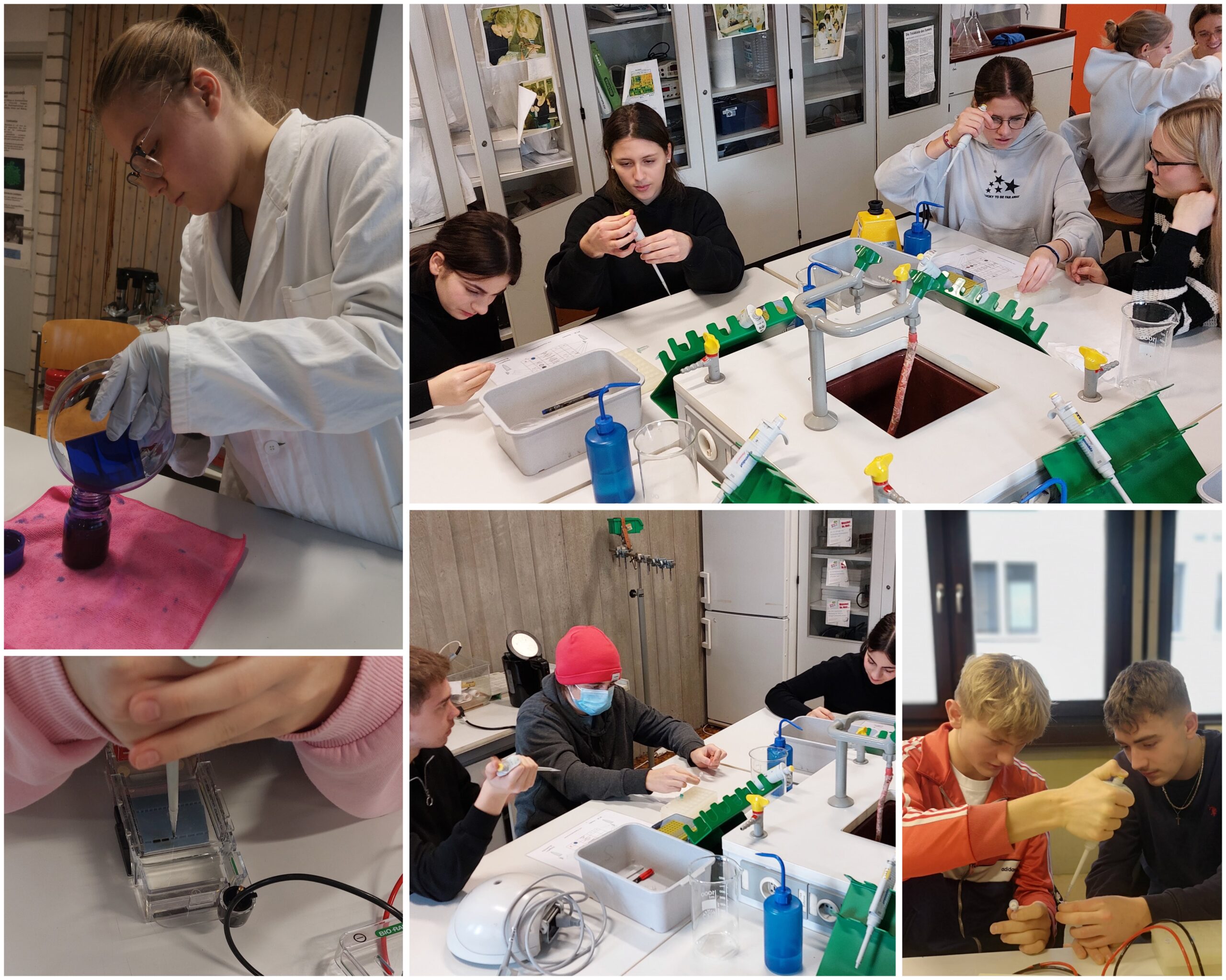Im Dezember`24 und Januar`25 hatten die beiden Leistungskurse Biologie des Gymnasiums Neckartenzlingen die Gelegenheit, theoretische Unterrichtsinhalte in einem praxisnahen Umfeld zu erleben: Im Rahmen einer spannenden Exkursion wurde das Labor am Mörike-Gymnasium in Esslingen besucht. Vor Ort hatten die Schüler*innen die Möglichkeit, ihr theoretisches Wissen durch praktisches Arbeiten zu vertiefen. In Kleingruppen wurden verschiedene Experimente, wie die Analyse von DNA-Proben, das Verfahren der PCR und die Durchführung und Auswertung einer Gelelektrophorese, durchgeführt. Die Schüler*innen zeigten großes Interesse und Begeisterung bei der Umsetzung der theoretischen Konzepte in die Praxis. Diese praktischen Erfahrungen förderten nicht nur das Verständnis der komplexen biologischen Prozesse, sondern stärkten auch die Teamarbeit und das wissenschaftliche Denken der Schüler*innen.
