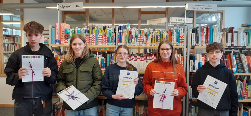 Die 9. und 10. Klassen haben in diesem Jahr zum ersten Mal bei „Wirtschaftswissen im Wettbewerb (w³)“, einem Wettbewerb, der von den Wirtschaftsjunioren deutschlandweit organisiert wird, teilgenommen. Die Gewinner*innen der 9. Klassen waren Julius Nolle (9a), Lene Hahn (9b) und Frieda Wladarz (9c). Die Gewinner*innen der 10. Klassen waren Nico Müller (10a), Mila Bauer (10b) und Ruben Longin (10c).