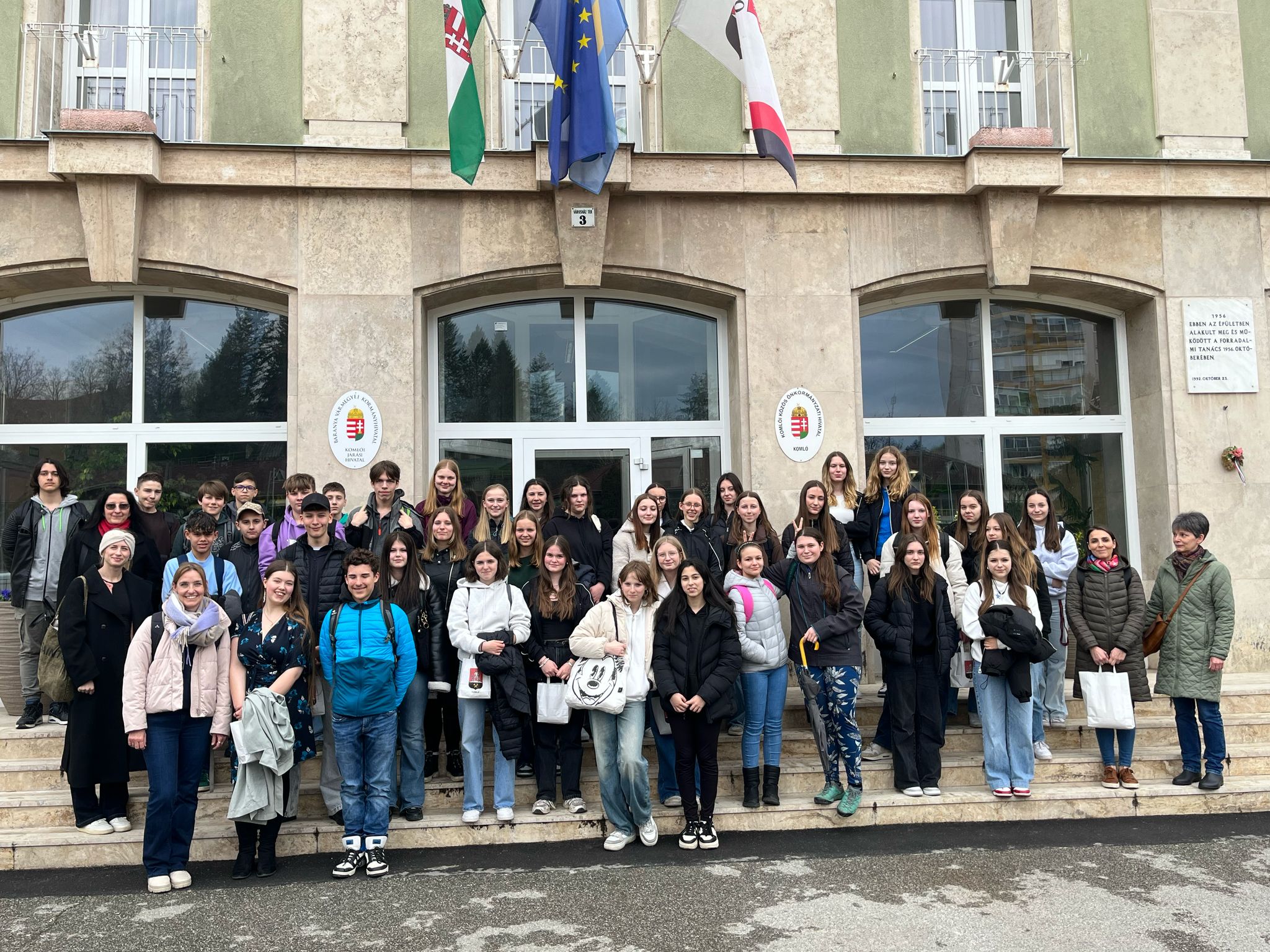 Nach ca. 14 Stunden Fahrt, etlichen Pausen und einem Busfahrerwechsel kamen wir etwas erschöpft abends in Komló an. Von unseren Gastfamilien und den Lehrkräften an unserem Ankunftsort wurden wir herzlich empfangen. Es war toll, unsere Austauschpartner wiederzusehen, die Ende September ja schon bei uns in Neckartenzlingen gewesen waren. Bei den Stadtspielen am nächsten Tag hat man Vielen die Erschöpfung der Fahrt noch angesehen, aber auch das legte sich in den darauffolgenden Tagen. Am Freitag besuchten wir Pécs [„Peetsch“], die fünftgrößte Stadt Ungarns, und haben dort in einem Bähnle eine Stadtführung bekommen. Das Wochenende hat jede Familie individuell gestaltet, doch manchmal traf man sich am Fernsehturm, in einem Freizeitpark oder zum Lasertag-Spielen. Ein weiteres Highlight, auf das sich Viele schon gefreut hatten, war Budapest. Am Dienstagmorgen startete der Bus in Richtung Hauptstadt. Dort besichtigten wir den sogenannten ,,Heldenplatz“, das „Haus der Ungarischen Musik“ und dann das berühmte Parlamentsgebäude, bevor uns unsere Lehrer Freizeit gaben. Die meisten von uns haben die Zeit zum Bummeln und Shoppen genutzt.