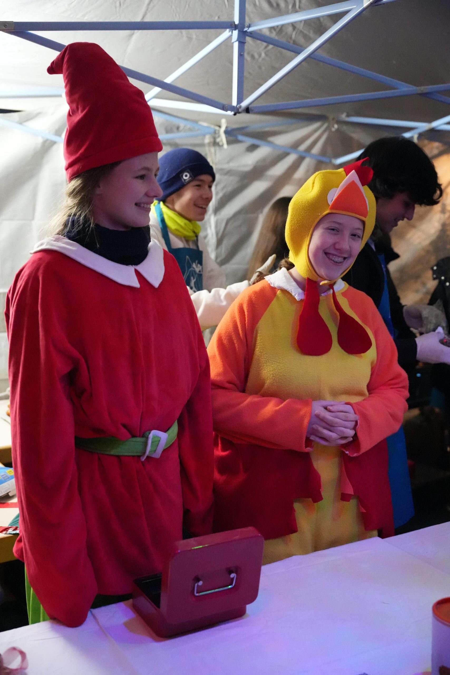 In der Pause sorgten die Schüler*innen der JG1 und JG2 unter der Leitung von Harry Filkorn für die Bewirtung vor der Kirche – Weihnachtsmarkt-Flair inklusive!