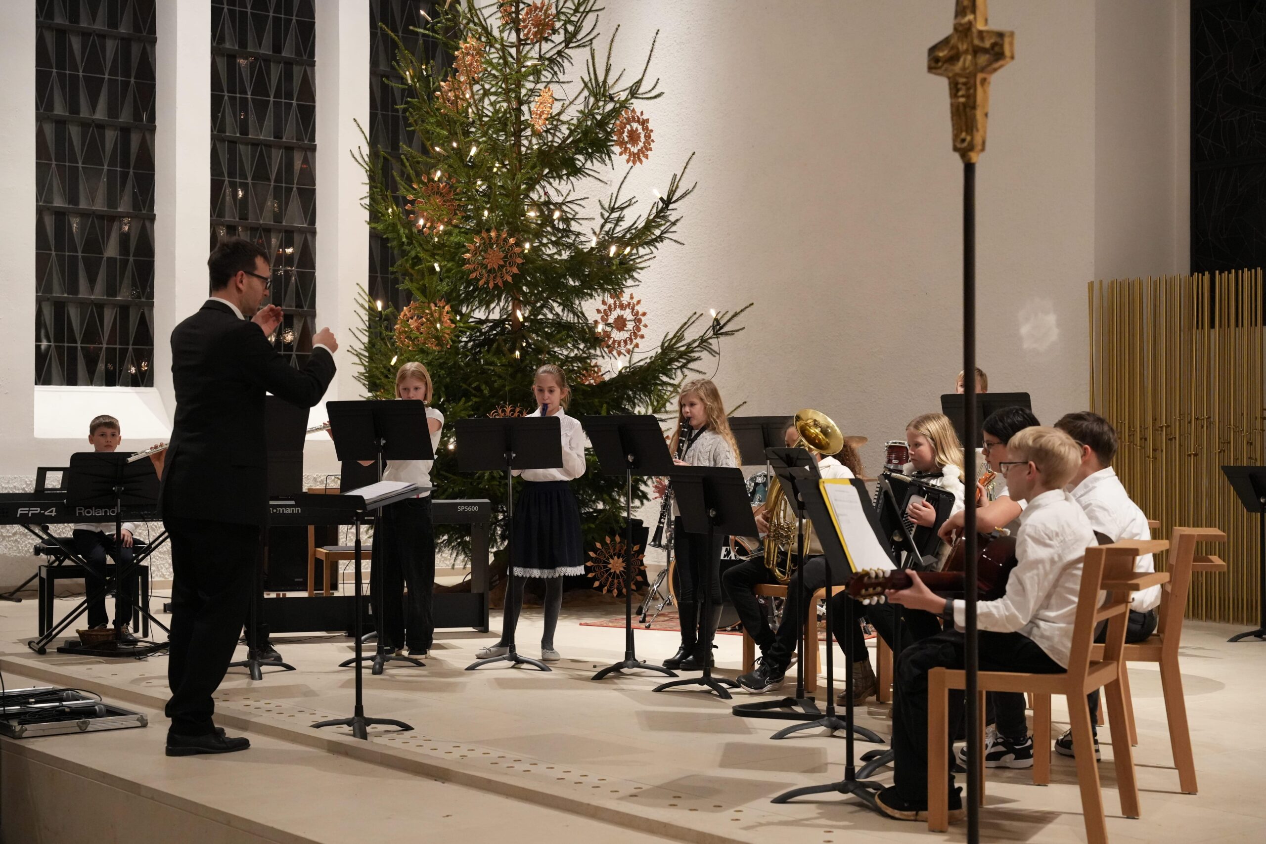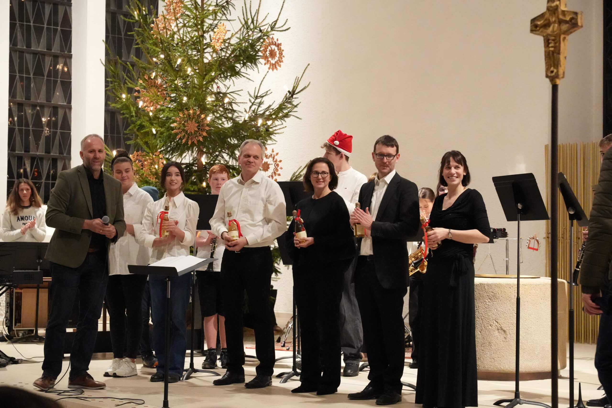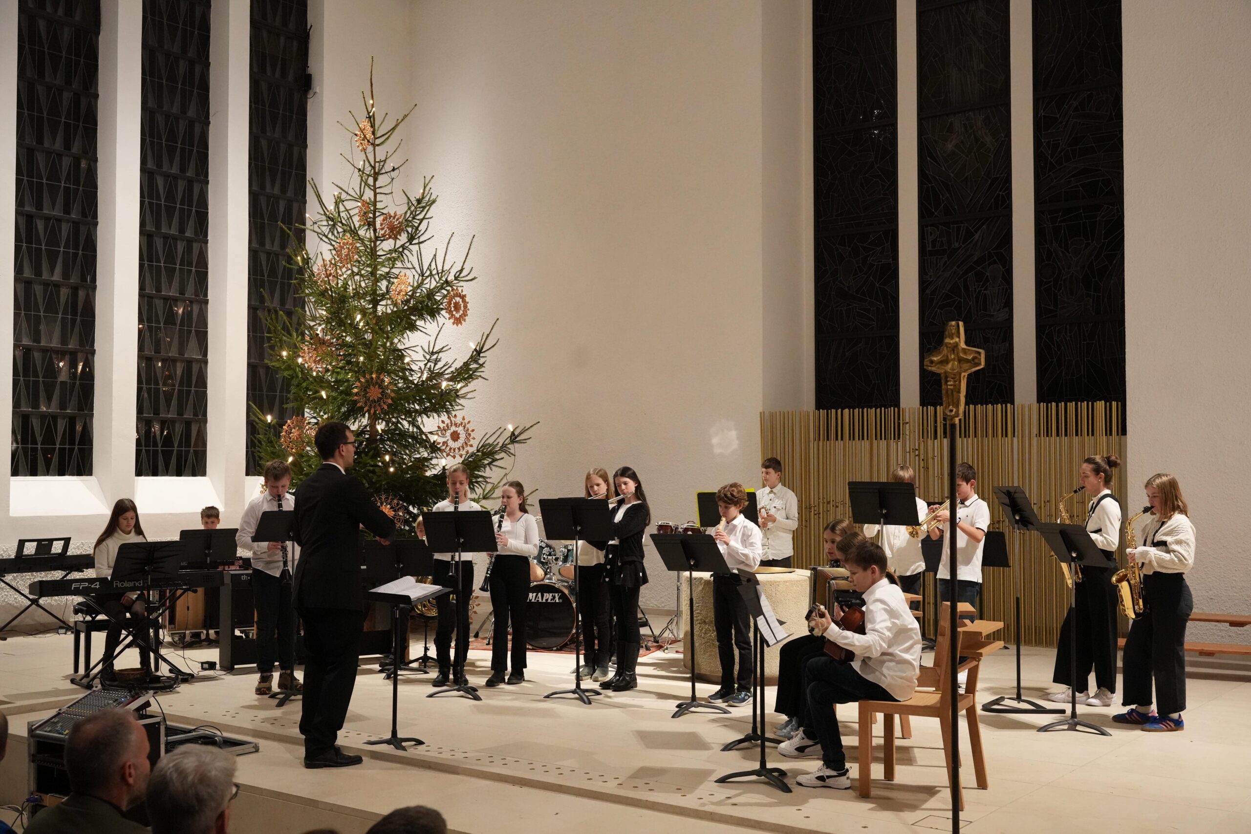 Das Orchester unter Leitung von Eva Dietzfelbinger spielte „Quest of the Three Magi“ und „Snow Day!“. Den Abschluss bildete die Band (Leitung J. Kromer). Solistin Sanja Warschun (10a) beeindruckte bei „Set Fire to the Rain“, Matti Neureuter (JG1) sang „Can You Feel the Love Tonight“, und mit „Jazzy Holidays“ endete das Konzert beschwingt.