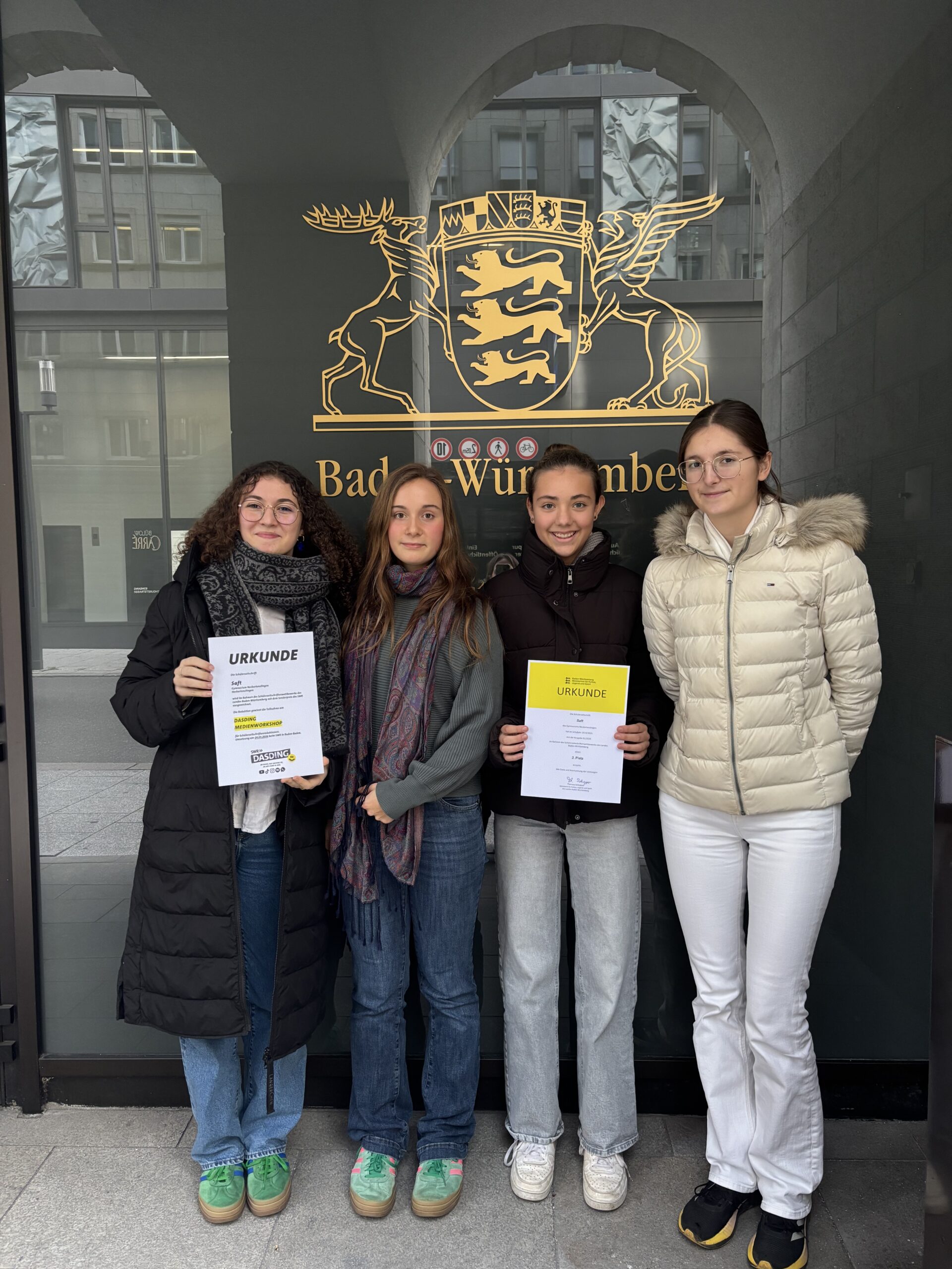 Die Redakteurinnen Mara Bollinger, Finja Schilling sowie Lara Rabausch nahmen im Anschluss die Urkunde zum Dritten Preis sowie einen Zusatzpreis des Jugendradios des SWR „DASDING“ stellvertretend für die gesamte Saftredaktion entgegen und das nun bereits zum dritten Mal!