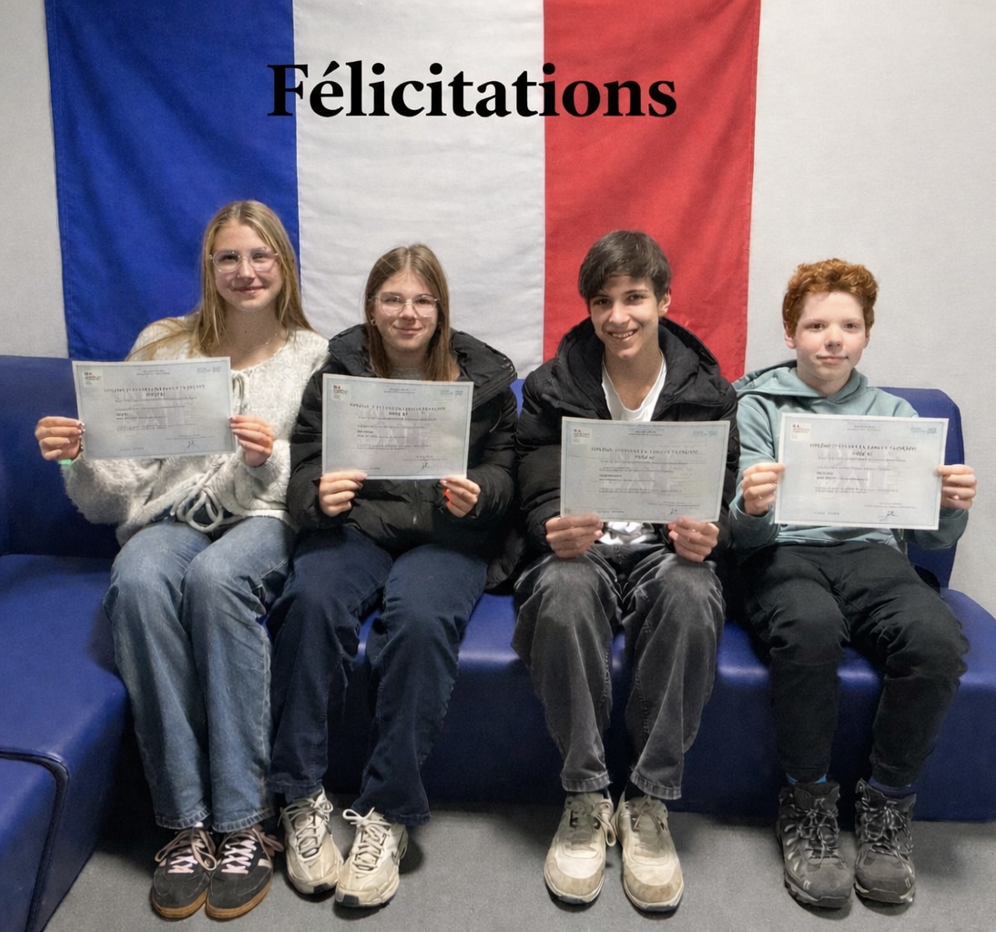 Endlich sind die DELF-Diplome aus Frankreich eingetroffen, so dass die Schüler:innen der Klassen 9 ihre erfolgreiche Teilnahme an der Sprachprüfung A2 aus dem letzten Schuljahr schwarz auf weiß in Händen halten können. Herzlichen Glückwunsch!