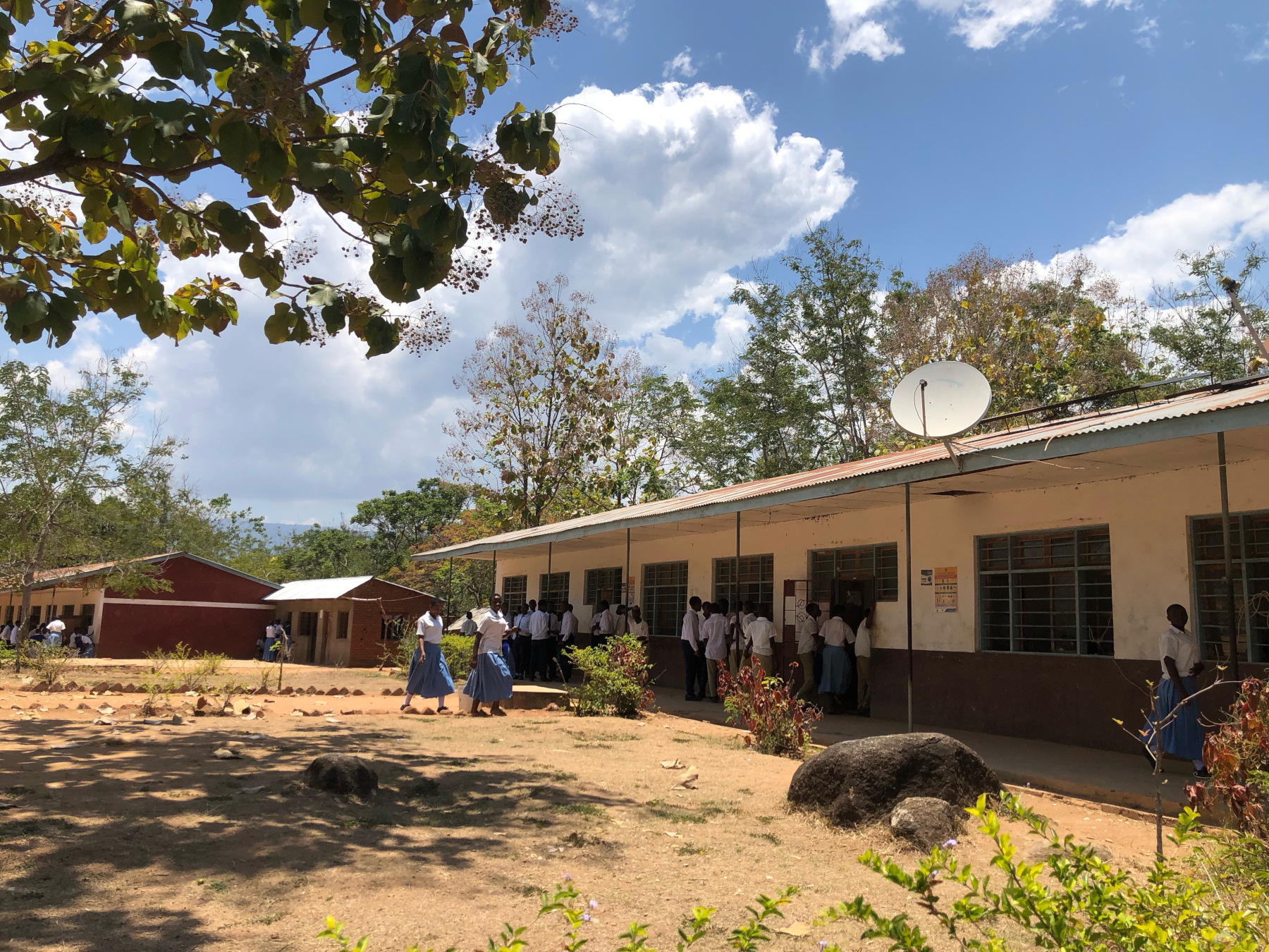 Unsere Kontaktpersonen vor Ort in Tansania sowie hier in Rottenburg – die Familie Chengula – sind seit Oktober 2021 wieder in Mbamba Bay und haben uns die aktuellen Bilder und Videos geschickt. Sie kennen den Rektor der Schule, Herr Marabu, seit vielen Jahren persönlich und sorgen dafür, dass die Spendengelder zuverlässig dort ankommen und sinnvoll eingesetzt werden. Sie kontrollieren auch regelmäßig den Fortschritt und den Verlauf unseres Projekts. Über sie erreichten uns per Email aktuelle Fotos des Schulzentrums vor Ort mit den besten Grüßen und großem Dank der Schüler- und Lehrerschaft. Die Schulmensa, in der täglich über 300 Kinder und Jugendliche versorgt werden, befindet sich zur Zeit im Rohbauzustand, da die finanziellen Mittel der Schule ausgegangen sind. Das Dach bietet in der Regenzeit keinen ausreichenden Schutz mehr und müsste dringend repariert werden. Außerdem werden Tische und Stühle benötigt, damit die Schülerinnen und Schüler Platz zum Essen haben. Es gibt dort viele Kinder, die auf das tägliche, warme Essen angewiesen sind, weil sie die ganze Schulzeit über im Schulzentrum wohnen, da ein Fußmarsch in ihr Heimatdorf viel zu lange dauern würde.