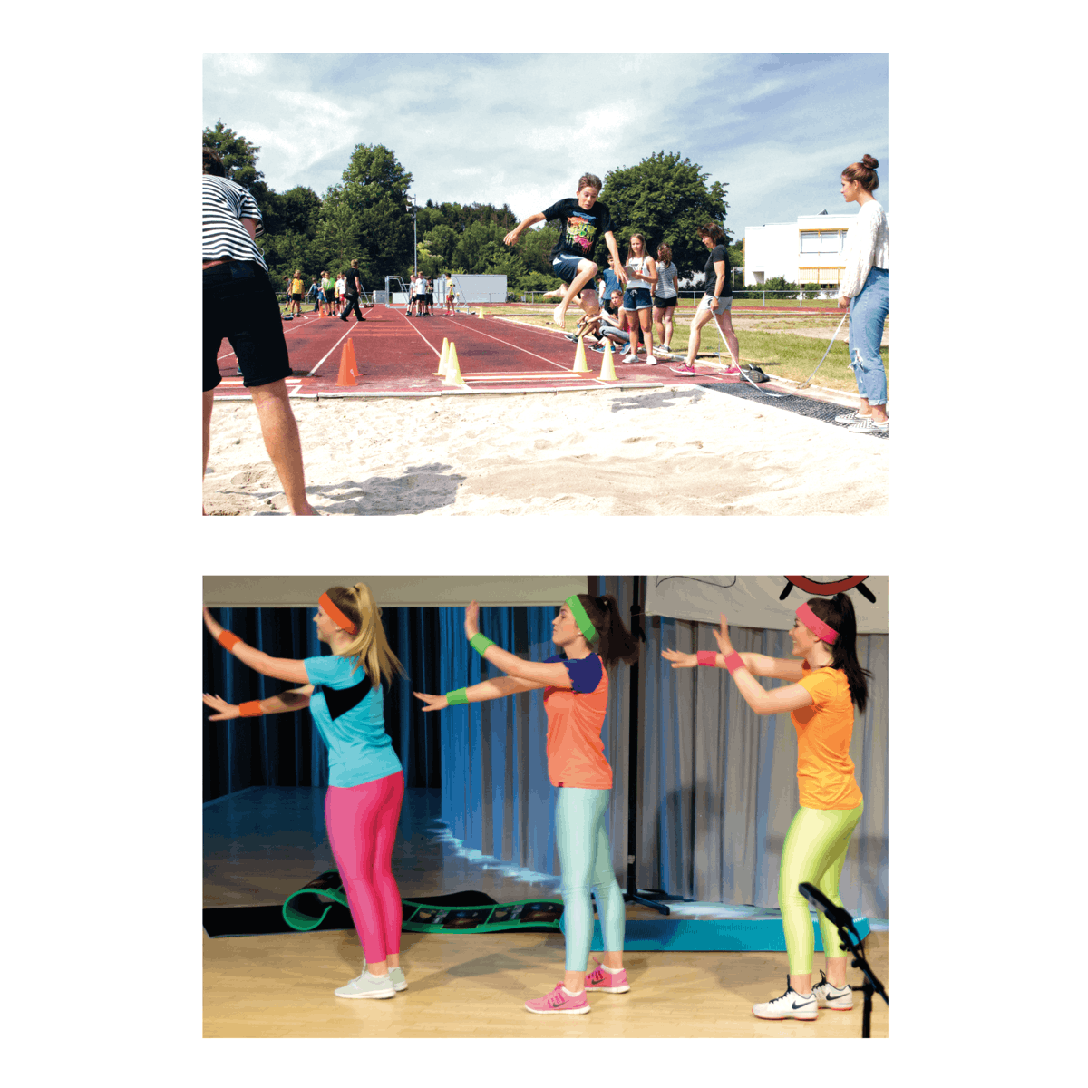 mit zahlreichen Events und Anlässen, die weit über den regulären Sportunterricht hinausreichen, weil wissenschaftlich bewiesen ist, dass Bewegung Kinder schlauer macht.