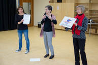 Monika Scheubel zeigte im Rahmen der feierlichen Zertifikat-Überreichung eine kurze Beispiel-Aktion in französischer Sprache mit koordinierenden Armbewegungen und musikalischem Rhythmus.